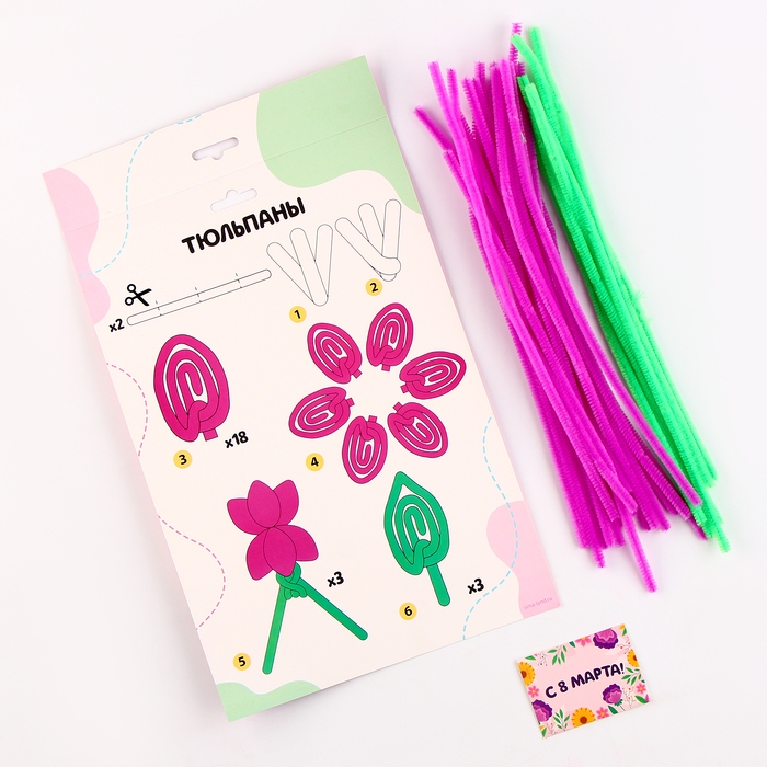 Цветы своими руками из меховых палочек «Букет тюльпанов», набор для творчества на 8 марта