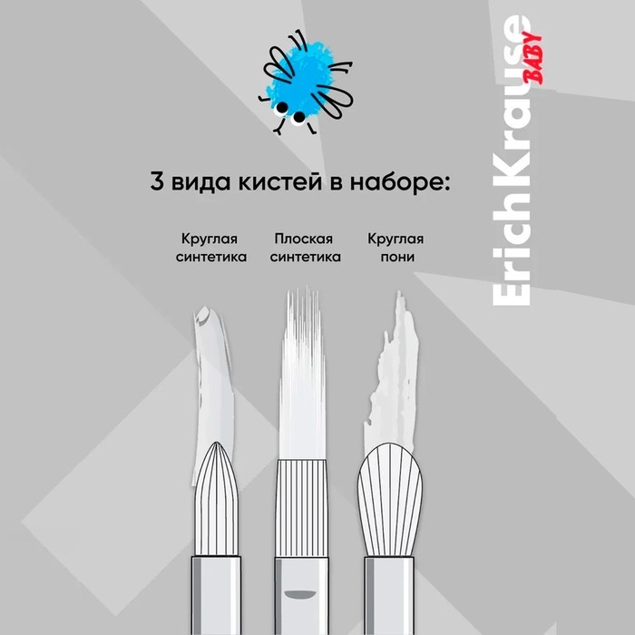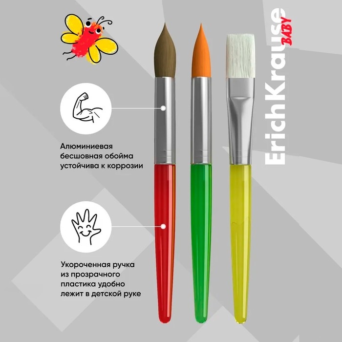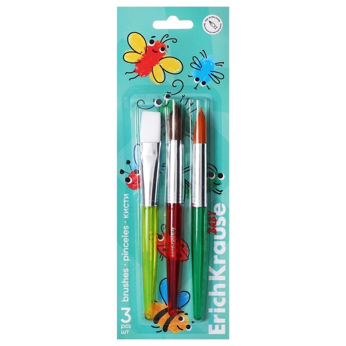 Набор кистей синтетика и пони 3 штуки, ErichKrause "Baby" для творчества, в блистере