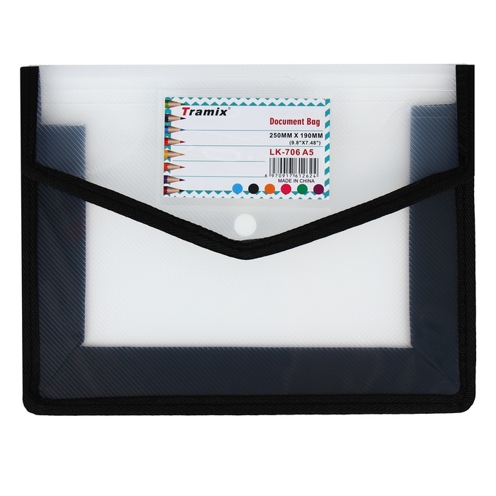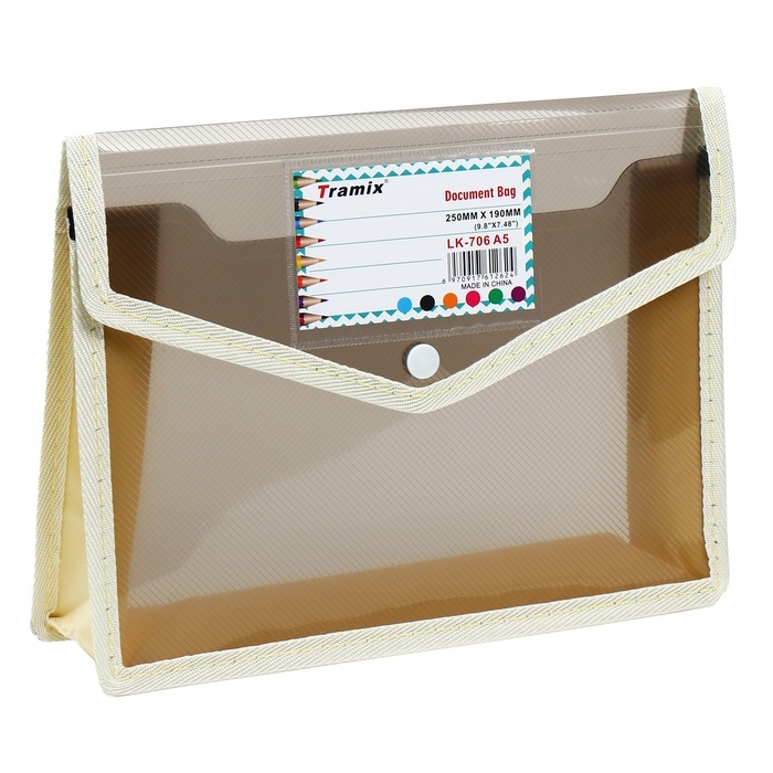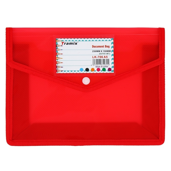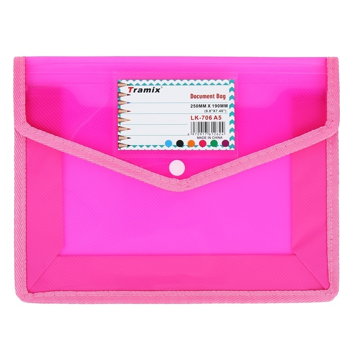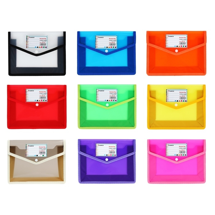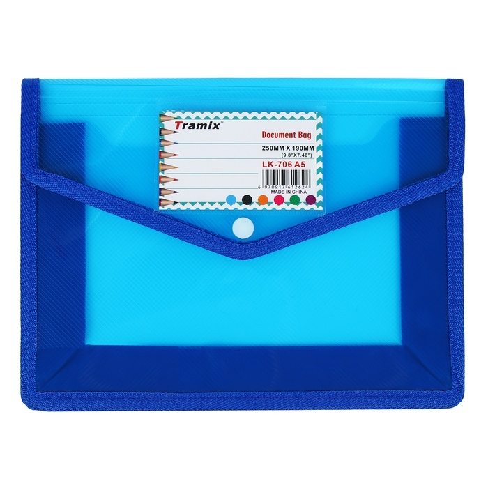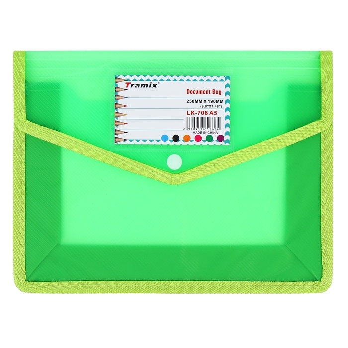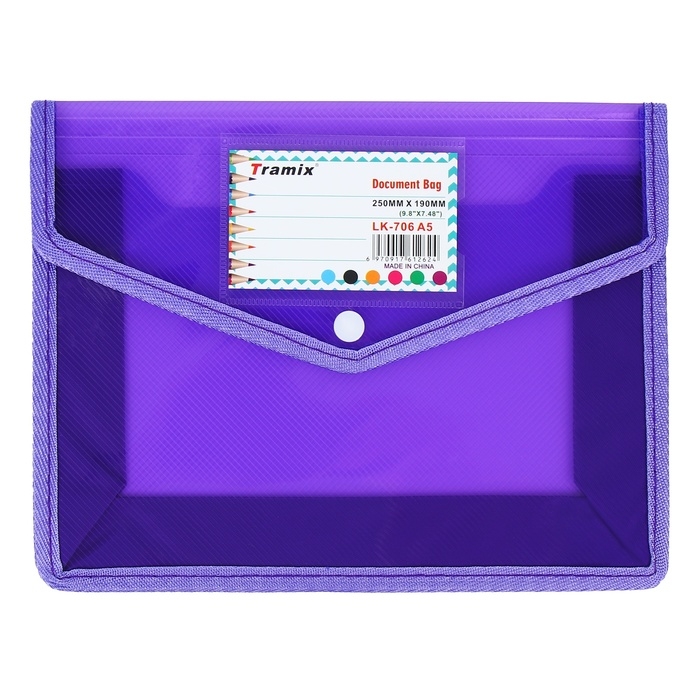 Папка-конверт на кнопке А5, 500 мкр, с расширением, горизонтальная, карман для визиток, МИКС