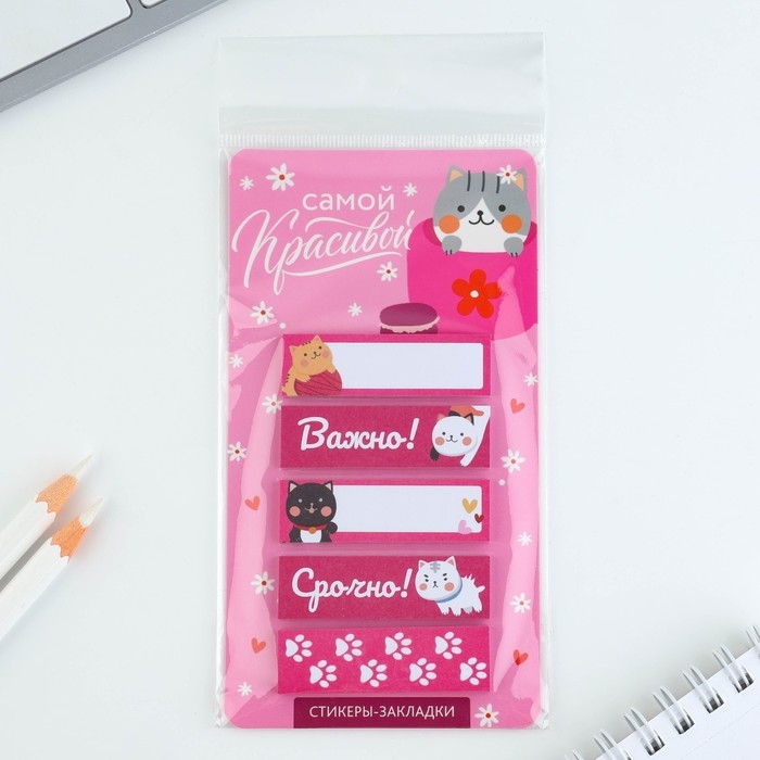 Стикеры-закладки, на подложке «Самой красивой», 5 шт, 30 л/шт
