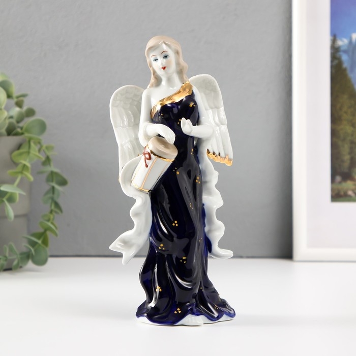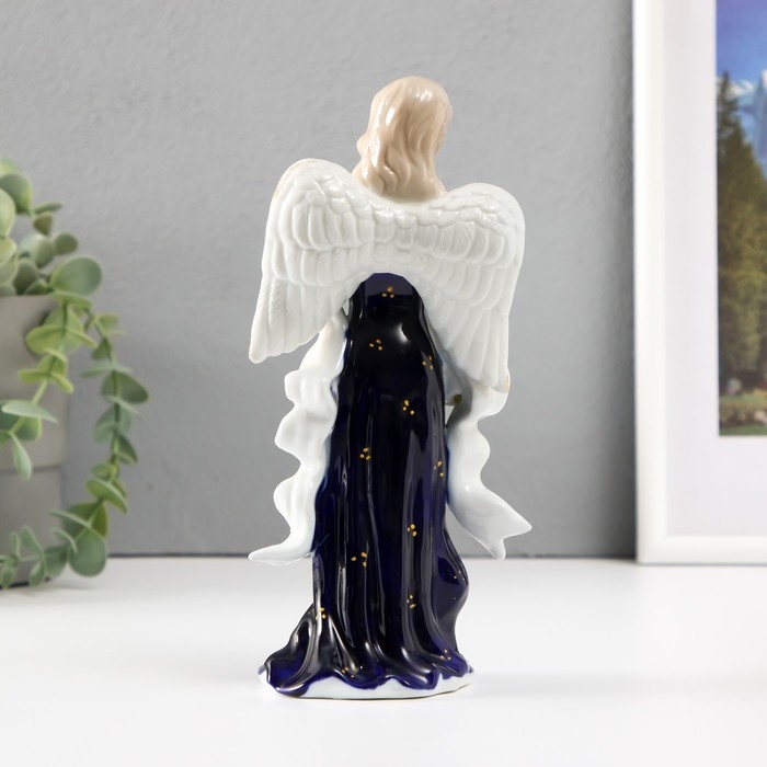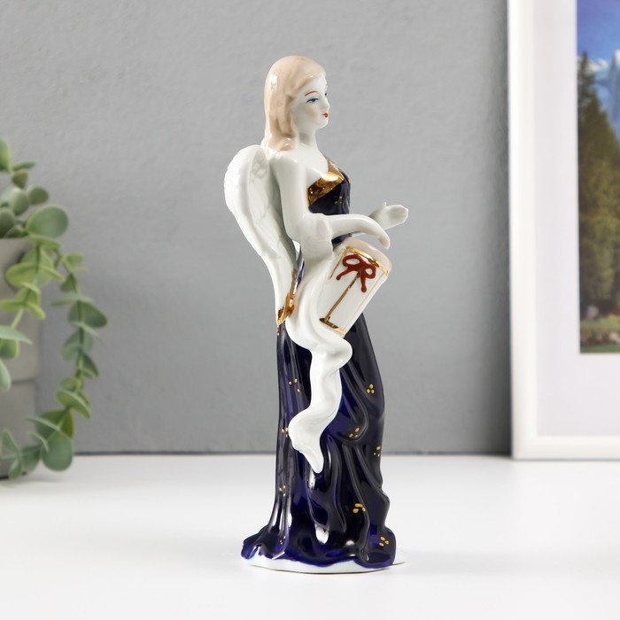 Сувенир фарфор Ангел с барабаном кобальт 20см