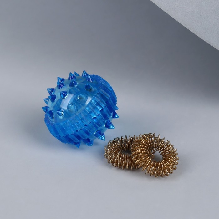 Массажёр «Су-джок», d = 3,5 см, с 2 кольцами, цвет синий