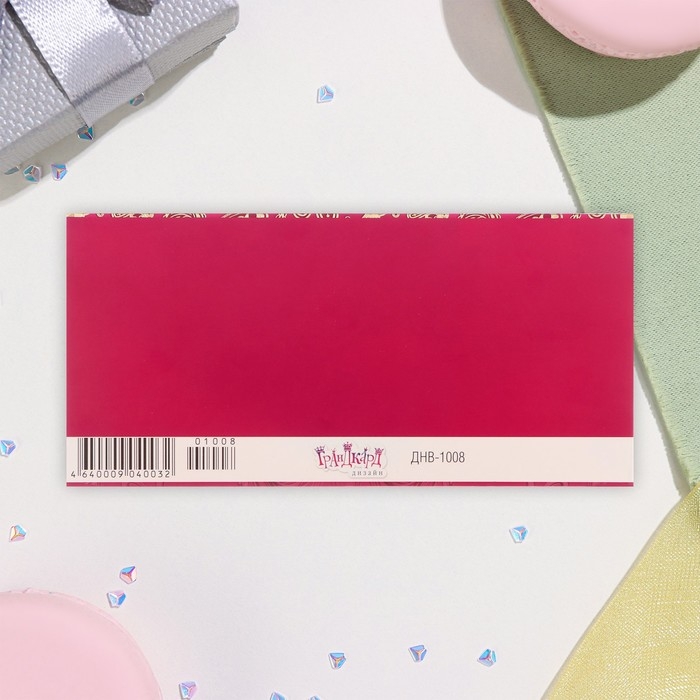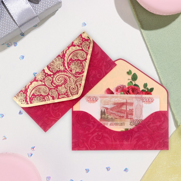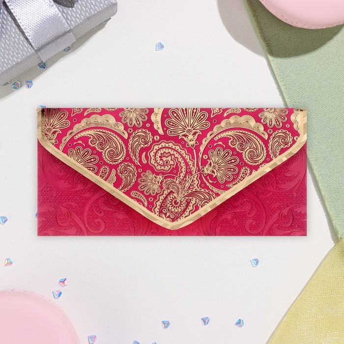 Конверт для денег "Универсальный" глиттер, тиснение, золотистые узоры, 19х9,2 см