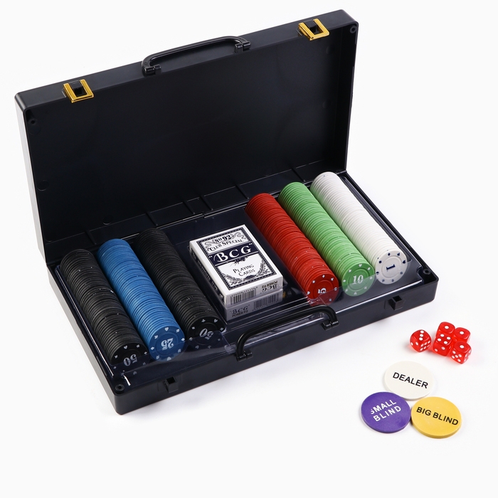 Покер "Время игры", набор для игры (300 фишек, 2 колоды карт, 5 кубиков)
