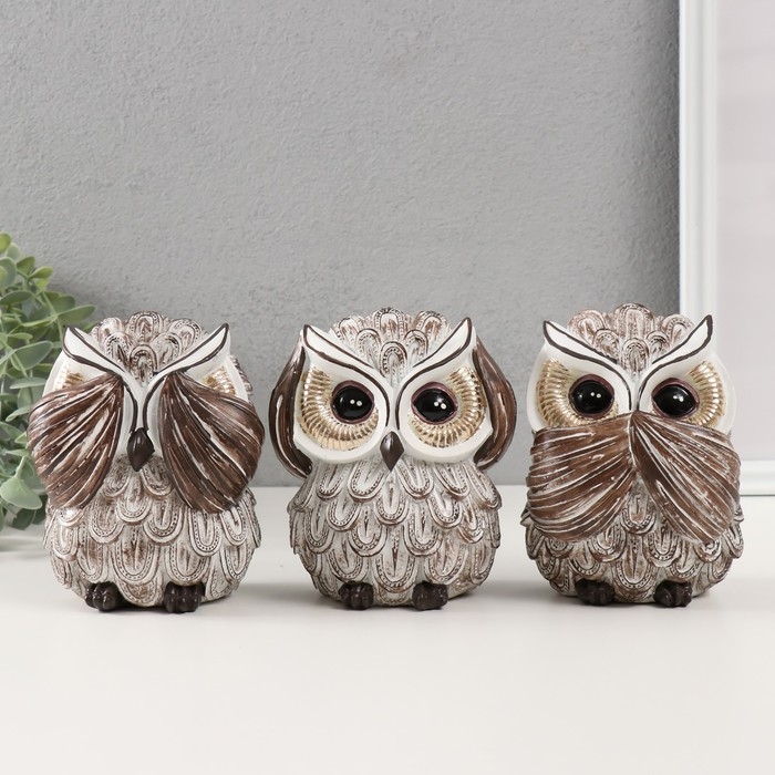 Сувенир полистоун "Филин - не вижу, не слышу, не скажу" МИКС 9,5х10х13 см