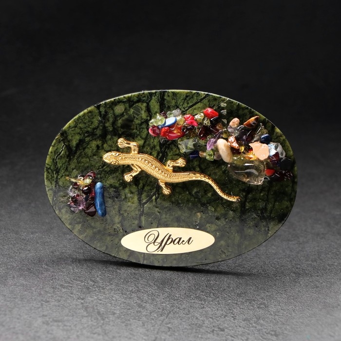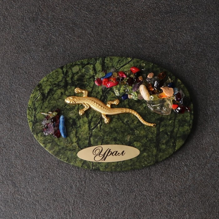 Магнит "Ящерка", с самоцветами, змеевик