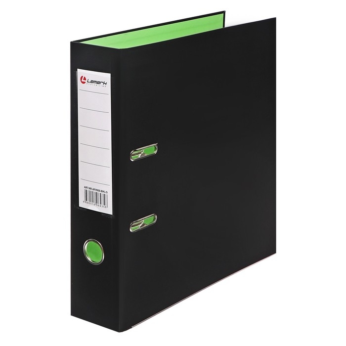 Папка-регистратор А4, 75 мм, Lamark, ПВХ, двухстороннее покрытие, металлическая окантовка, карман на корешок, собранная, черный/зелёный