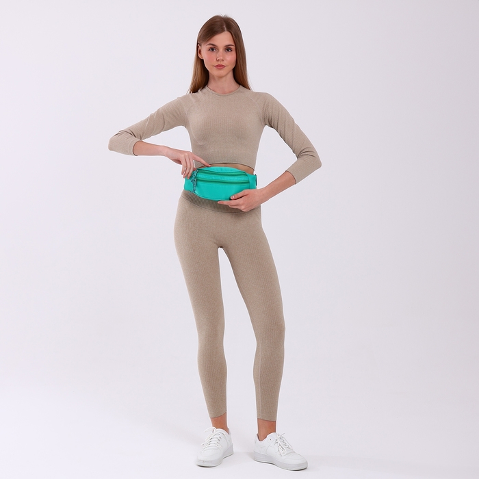 Поясная сумка на молнии, 2 кармана, цвет бирюзовый