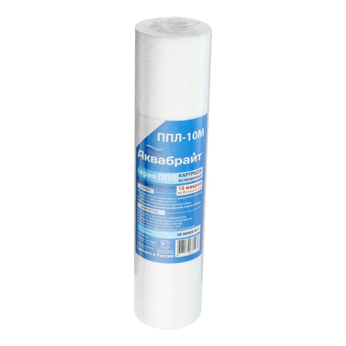 Картридж "Аквабрайт" ППЛ-10 М, 10" SL, полипропиленовый, для холодной воды, 10 мкм