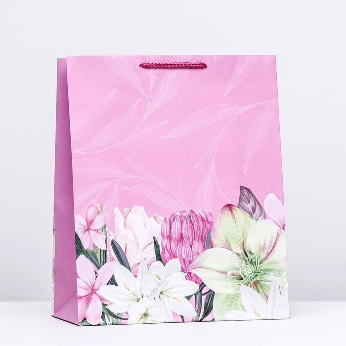 Пакет подарочный "Розовый луг", 26 х 32 х 12 см