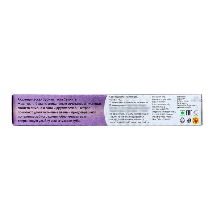 Зубная паста Самхита "Жемчужно-белая" - это специальное средство для ухода за полостью рта, которое помогает поддерживать здоровье зубов и десен. Она содержит натуральные экстракты трав, которые обладают противовоспалительным и антибактериальным действием.
