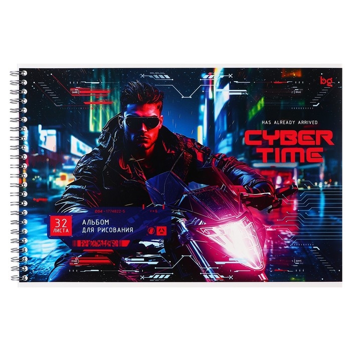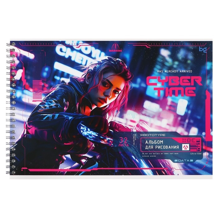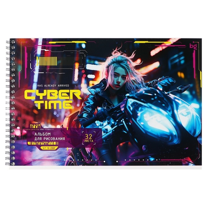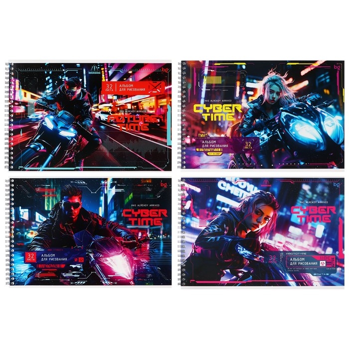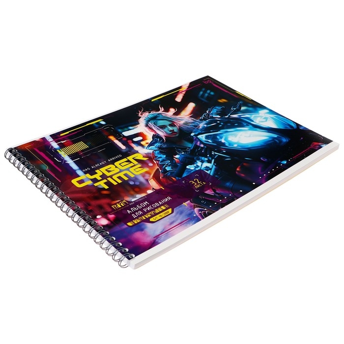 Альбом для рисования А4 32 листа на гребне "Неоновый драйв", обложка картон, блок офсет 100 г/м2, МИКС