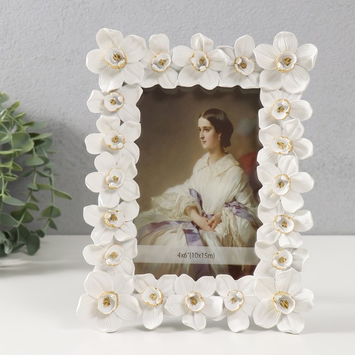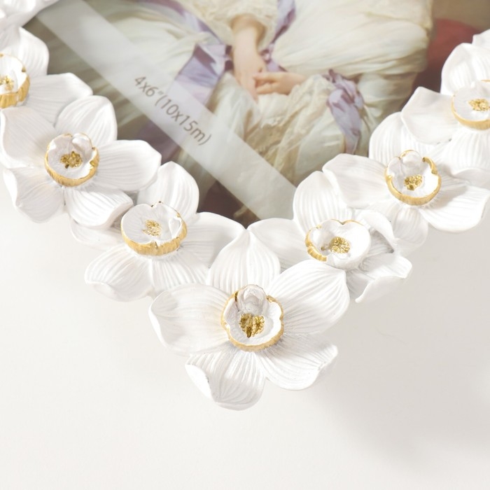 Фоторамка полистоун 10х15 см "Нарциссы" белая 17х22 см