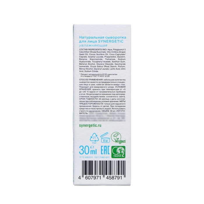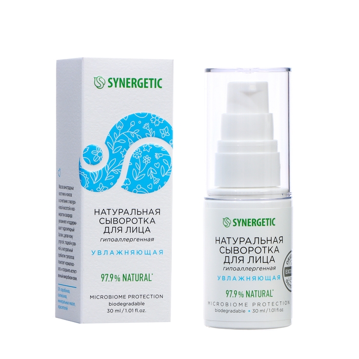 Сыворотка для лица натуральная SYNERGETIC увлажняющая, 30 мл