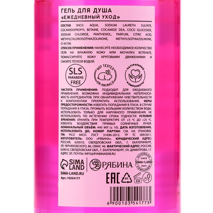Гель для душа женский, 440 мл, аромат малинового лимонада, PICO MICO