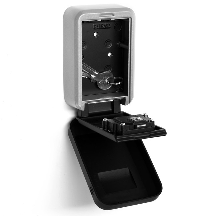 Сейф-ключница кодовая ТУНДРА, металлическая, с защитной крышкой, цвет серый/черный