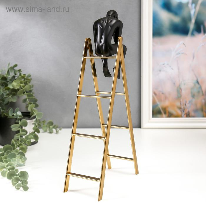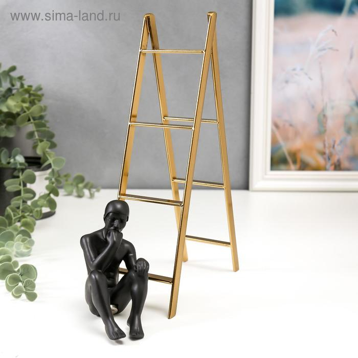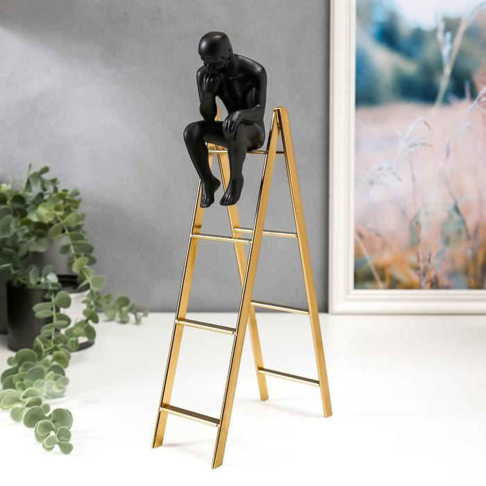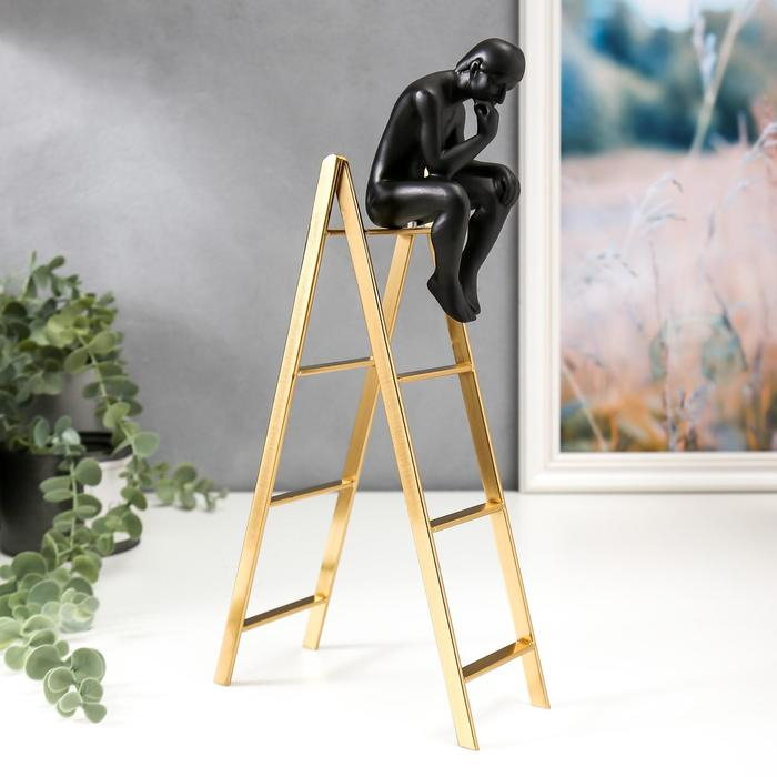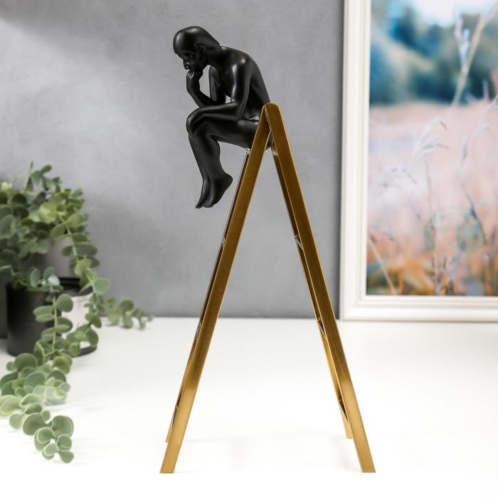 Сувенир полистоун, металл "Мыслитель на лестнице" чёрный с золотом 30,6х6,7х16 см