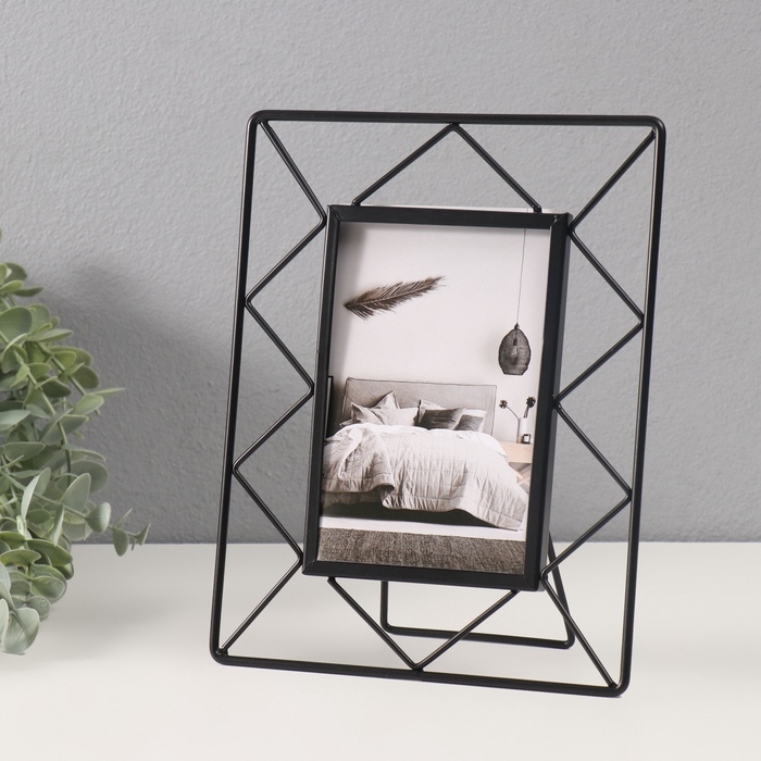 Фоторамка металл на 1 фото 10х15 см "Лофт. Треугольники" черный 18х1х22 см