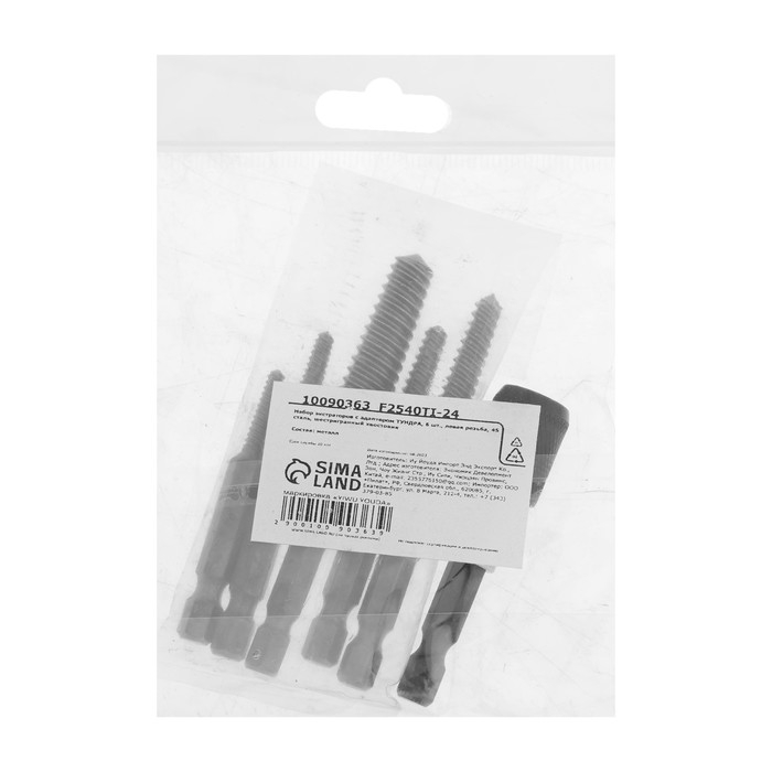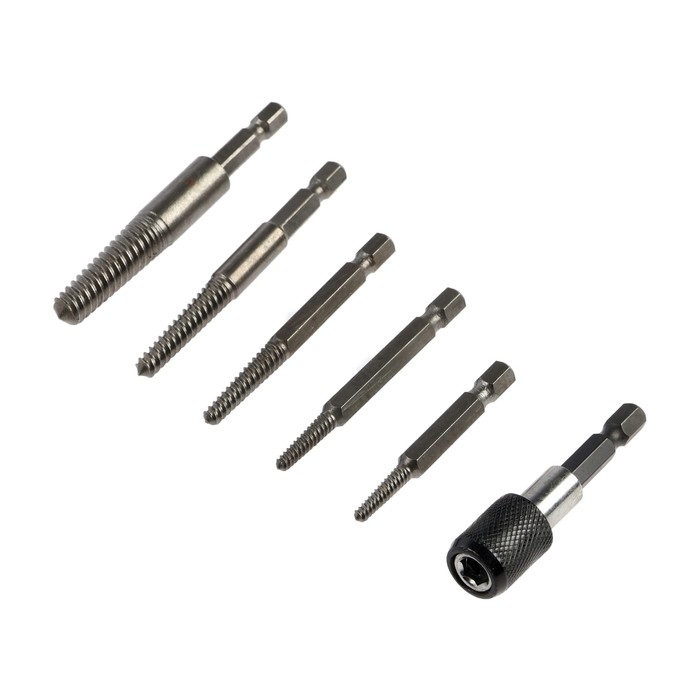 Набор экстракторов с адаптером ТУНДРА, 6 шт, лев. резьба, 45 сталь, 6-гр. Хвостовик