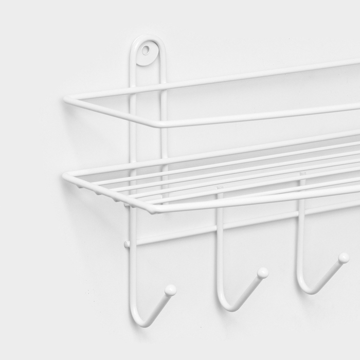 Полка для ванной, 5 крючков, 34×11,5×17 см, белая