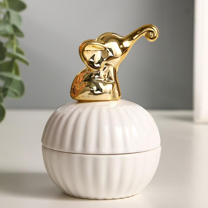 Шкатулка керамика "Золотой слонёнок" 11,3х8х8 см