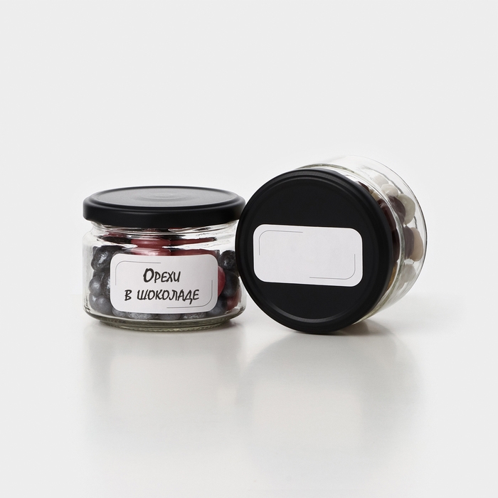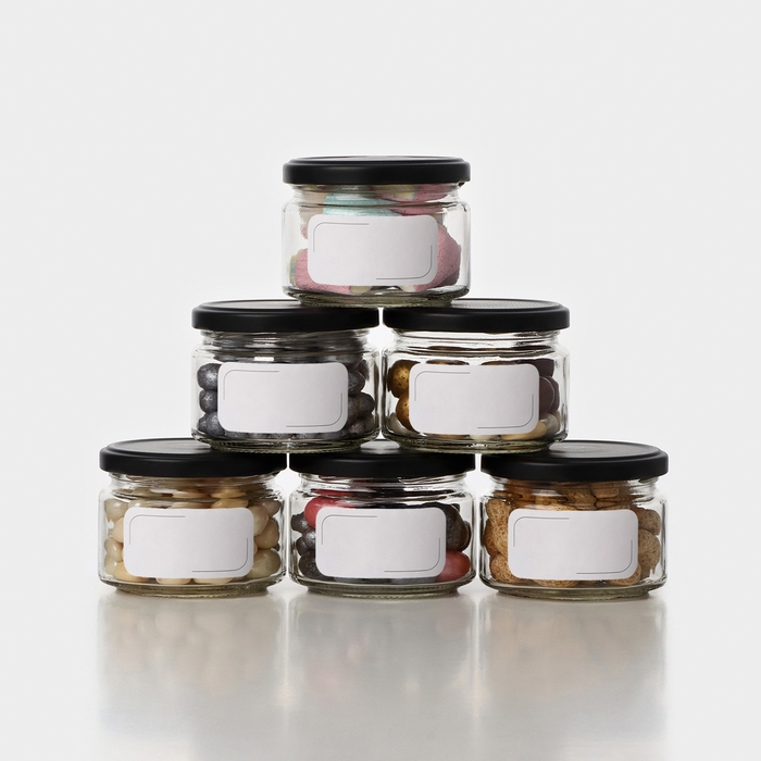 Набор стеклянных банок с черной крышкой и этикеткой, ТО-82, 250 мл, 6 шт