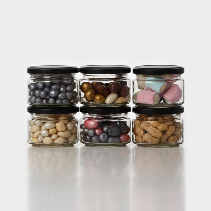 Набор стеклянных банок с крышкой для консервации, ТО-82 мм, для свечей, 250 мл, 6 шт