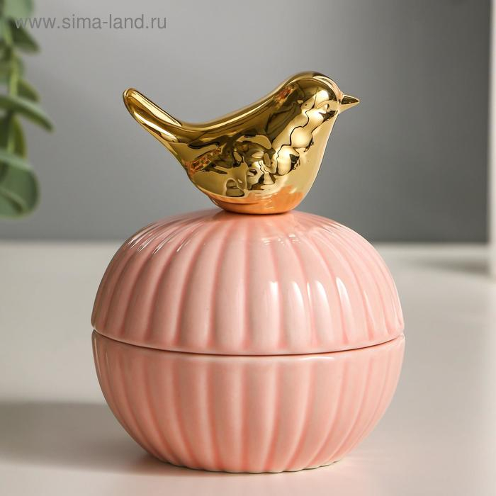 Шкатулка керамика "Золотой воробушек" 10х8х8 см