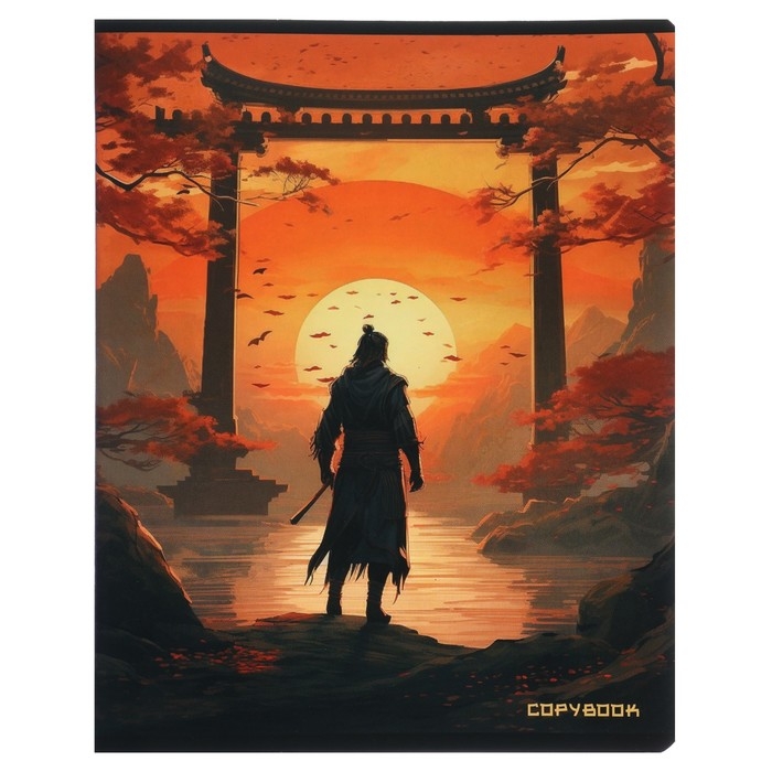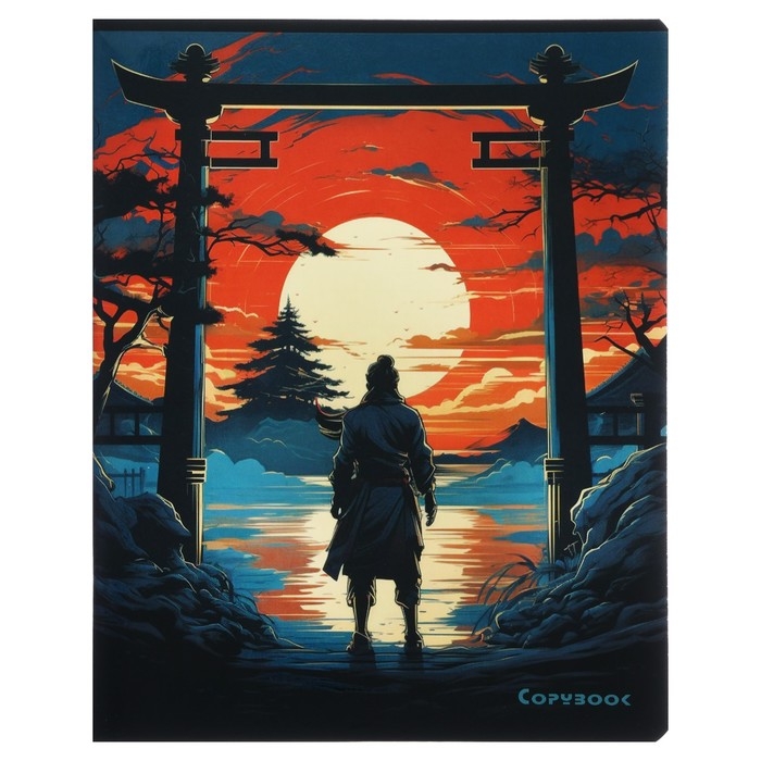 Тетрадь 48 листов в клетку на скрепке "Самурай", обложка мелованный картон, твин-лак, УФ-лак, блок офсет, МИКС
