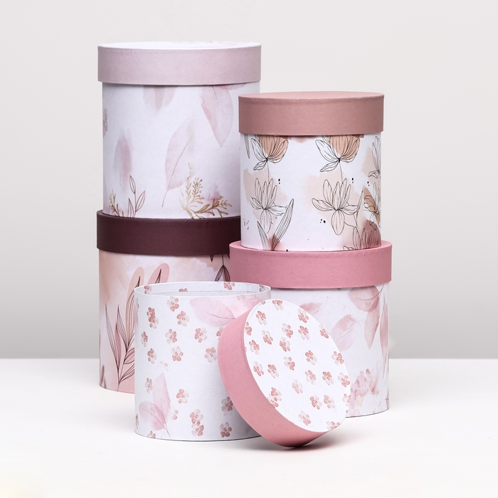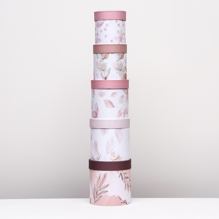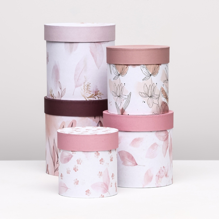 Набор шляпных коробок 5 в1 "Легкость", 20 х 20 - 15 х 15 см