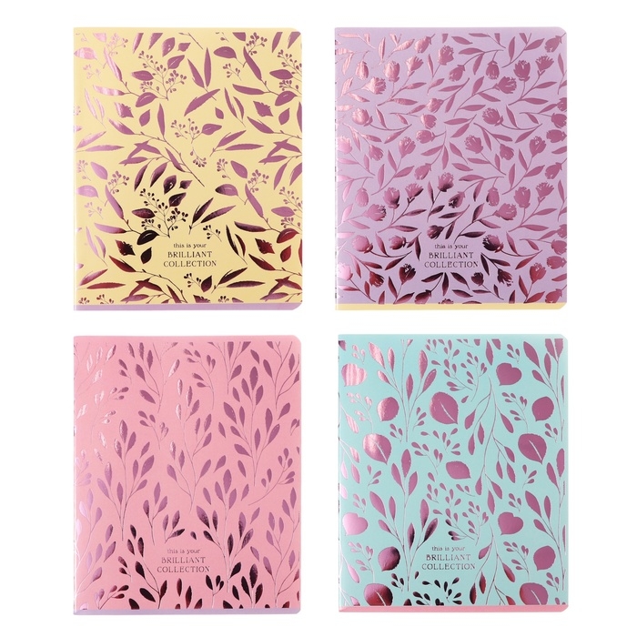 Тетрадь 48 листов в клетку Brilliant collection, обложка мелованный картон, ВД-лак, тиснение фольгой, блок 65г/м2, МИКС