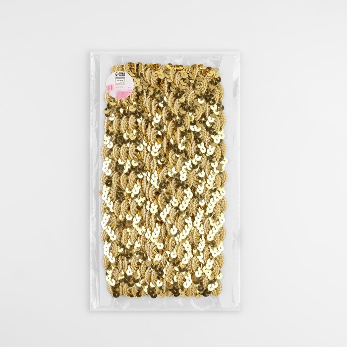 Тесьма декоративная с пайетками, 15 мм, 9,1 ± 0,5 м, цвет золотой