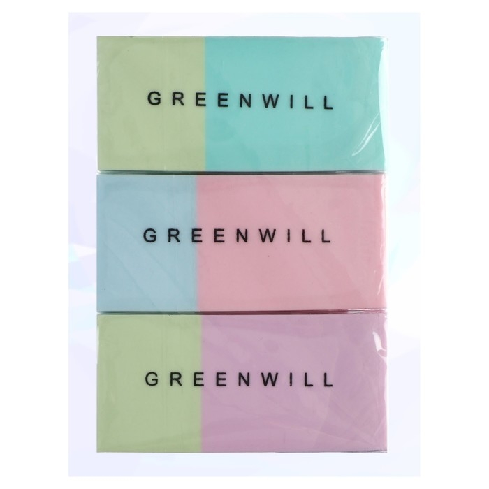 Набор Ластик прямоугольный, 3 штуки, МИКС
