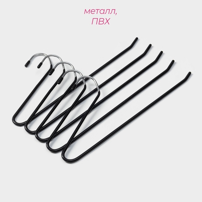 Плечики - вешалки для брюк и юбок антискользящие, одноуровневые, 14,5×35 см, 5 шт, цвет чёрный