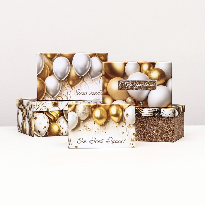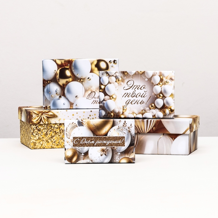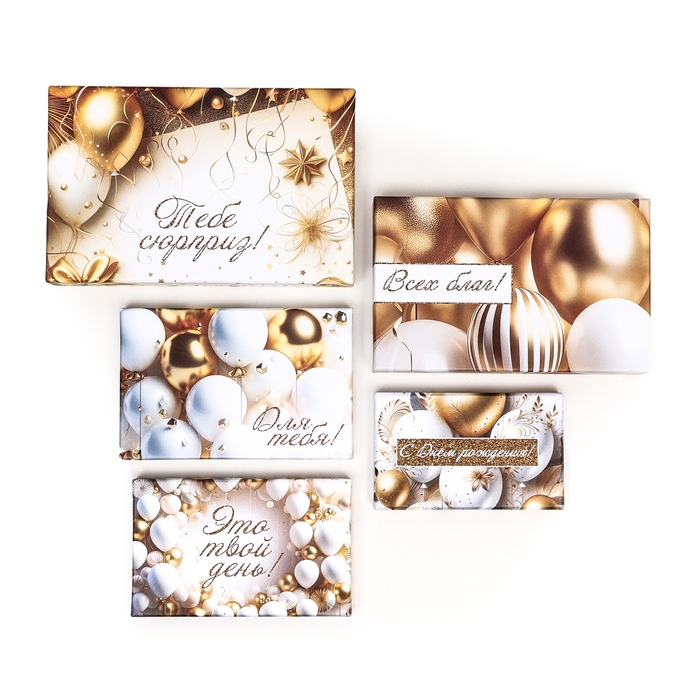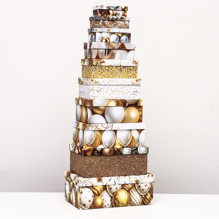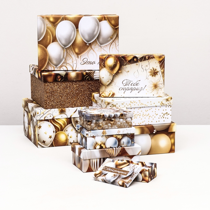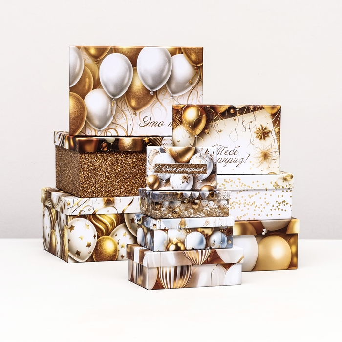 Набор коробок 10 в 1 "С днём рождения!", золотой, 32,5 х 20 х 12,5 -12 х 7 х 4 см