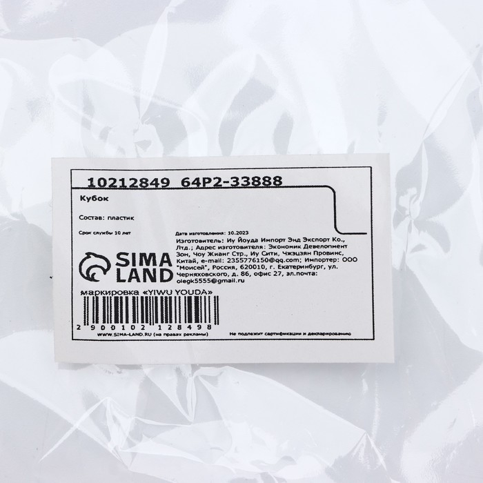 Кубок «Ты молодец», наградная фигура, золото, пластик, 16,5 х 8 см.