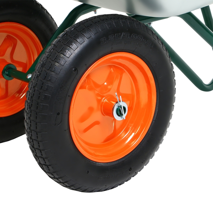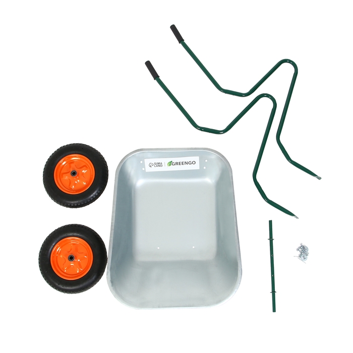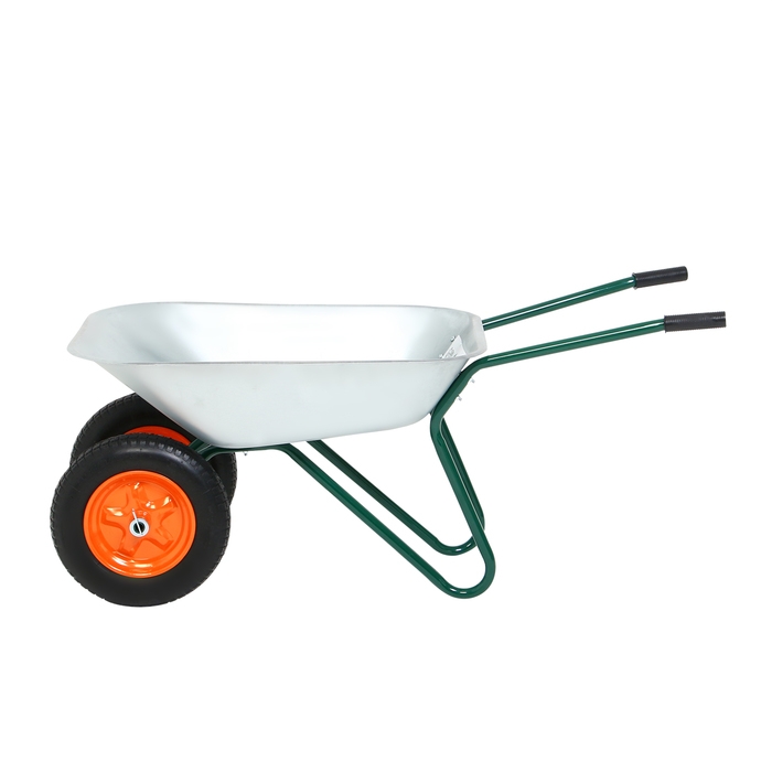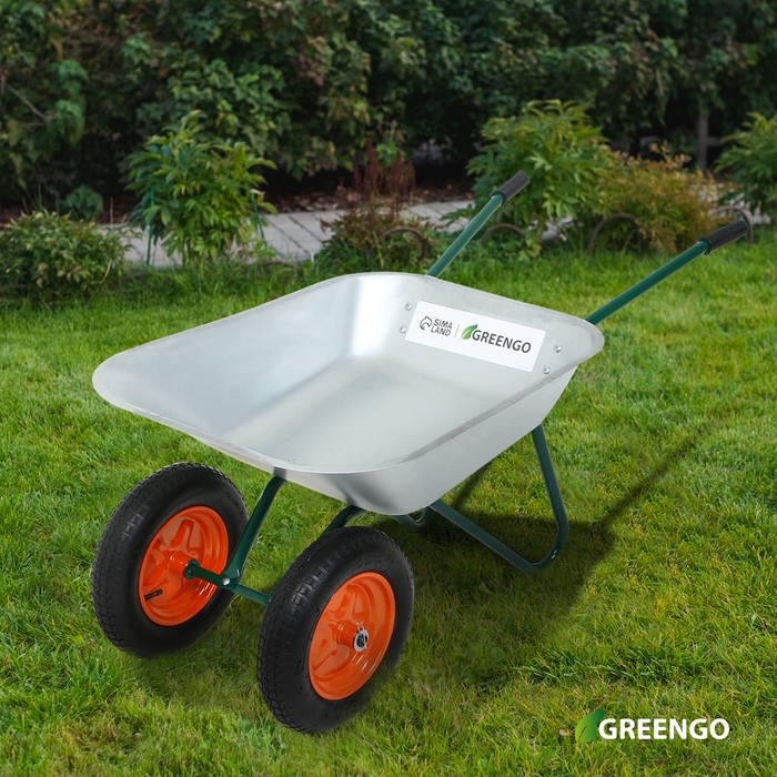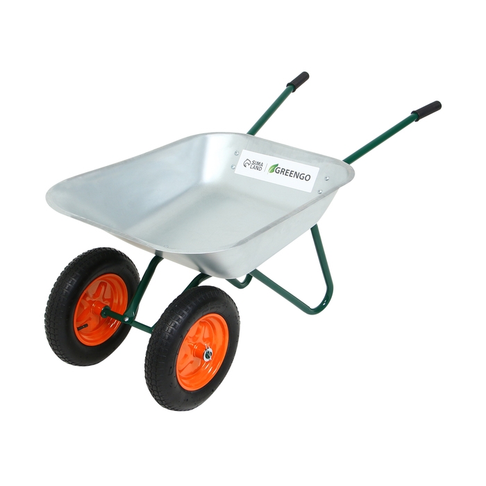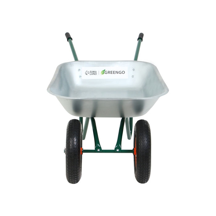 Тачка садовая, 2 пневмоколеса, груз/п 180 кг, объём 65 л, оцинкованный кузов 0,6 мм, Greengo