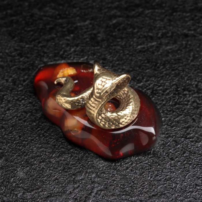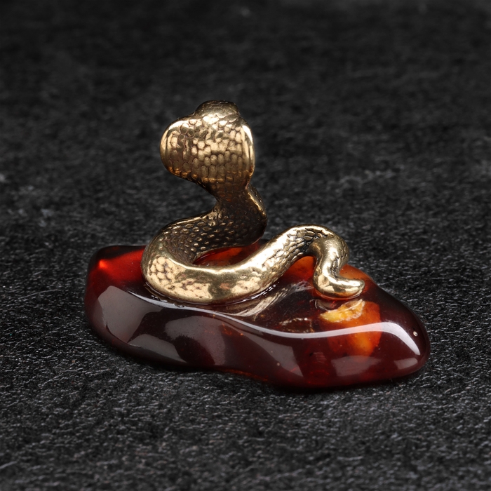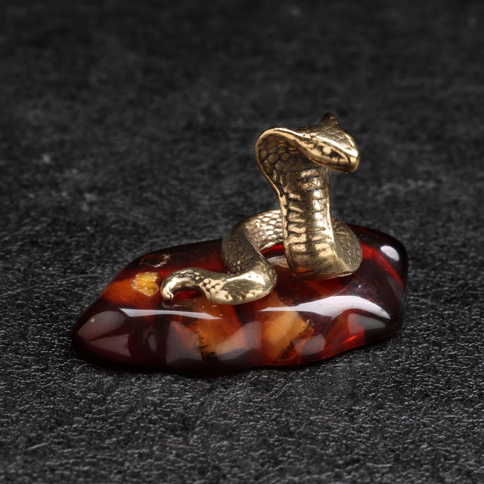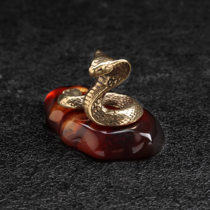 Сувенир "Змея Кобра", маленькая, латунь, янтарь