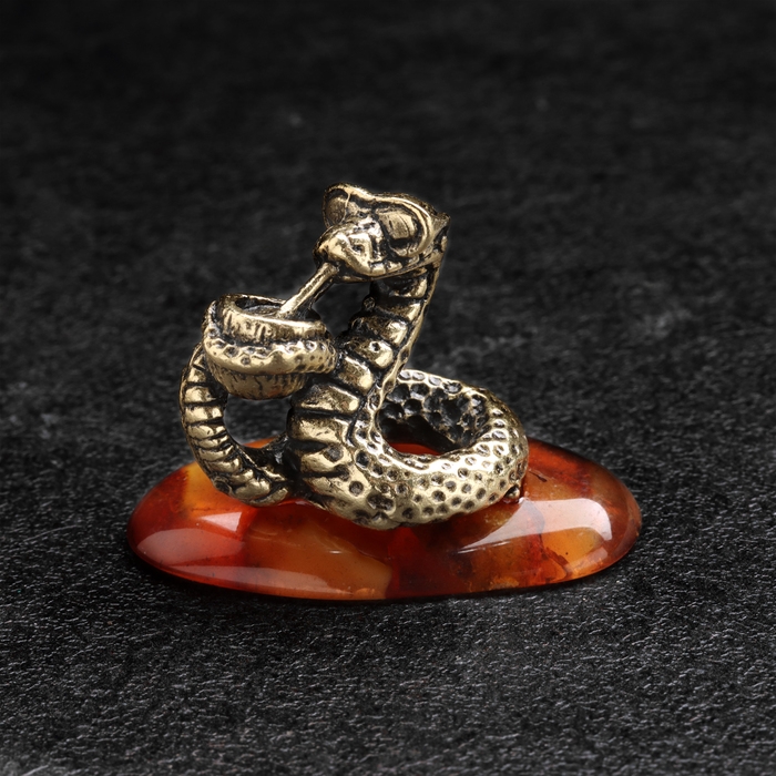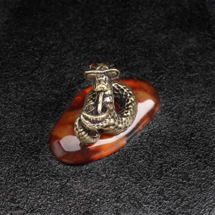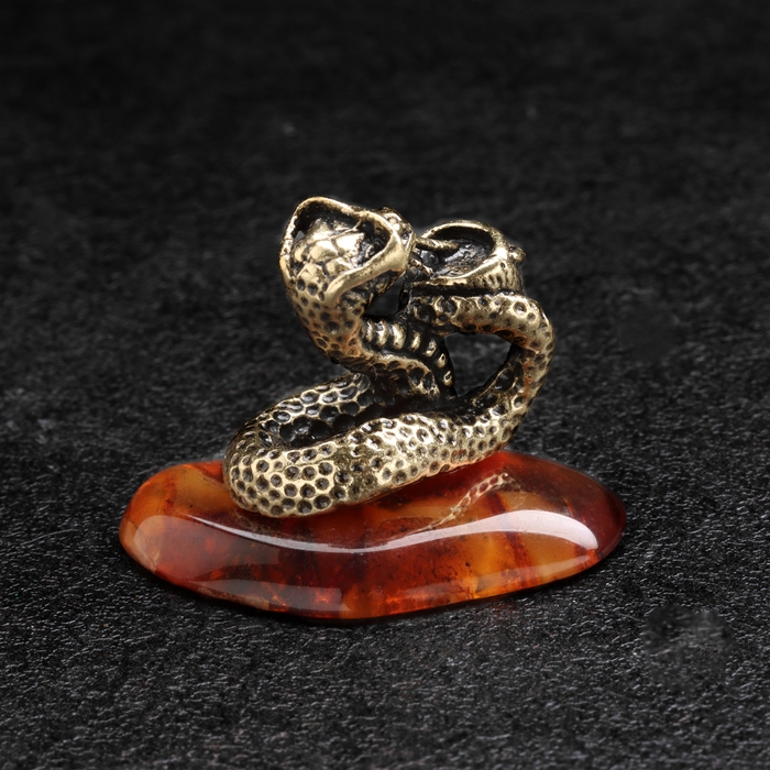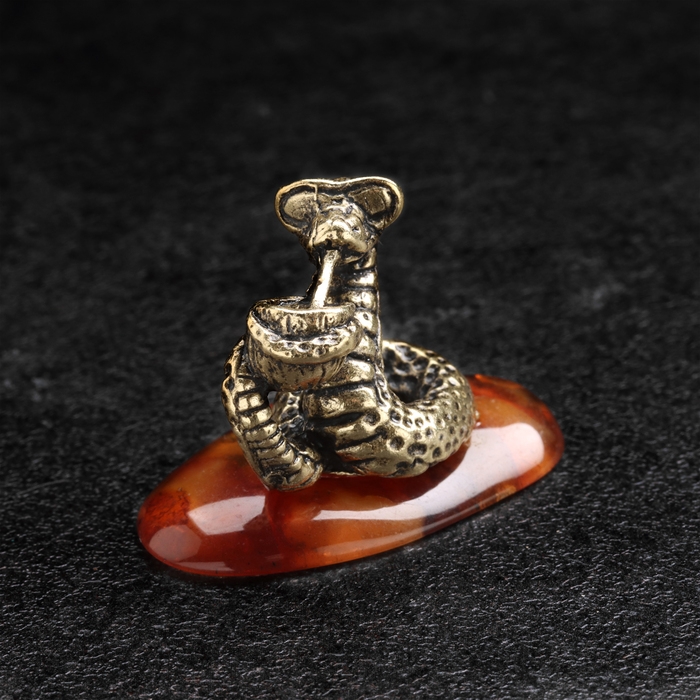 Сувенир "Змея с коктейлем", латунь, янтарь