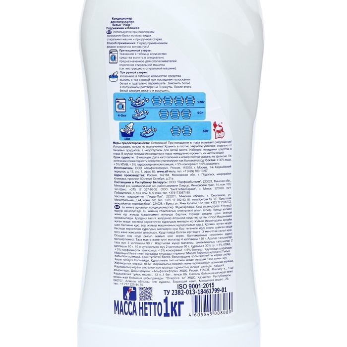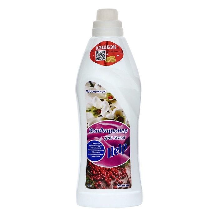 Кондиционер для белья «Help» с ароматом подснежника и клюквы придаёт белью свежесть и мягкость, облегчает глажение и обладает антистатическим эффектом. Средство подходит для всех видов тканей, включая шерсть и шёлк.