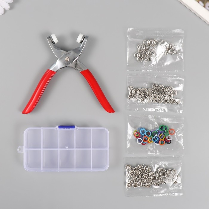Инструмент для установки люверсов 14,5х5 см + люверсы 50 шт 9,5 мм + шкатулка 9,7х17х2,1 см