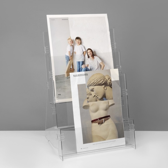 Диспенсер под флаер А4, 22×17,5×32 см на 3 деления, ПЭТ 2 мм