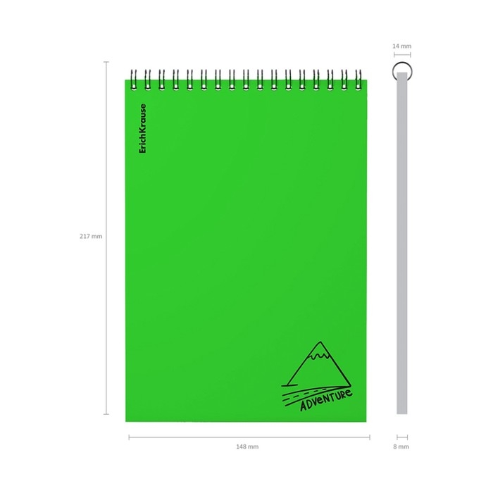 Блокнот на спирали А5, 80 листов, клетка, ErichKrause "Motion", пластиковая обложка шелкография, блок офсет белизна 100%, зеленый