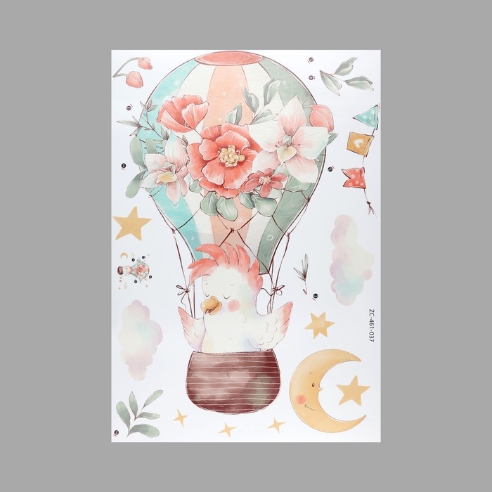 Наклейка пластик интерьерная цветная "Какаду на воздушном шаре" 40х60 см