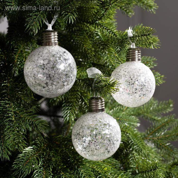 Набор ёлочных шаров «Зимний лес» 3 шт., батарейки, 1 LED, свечение белое