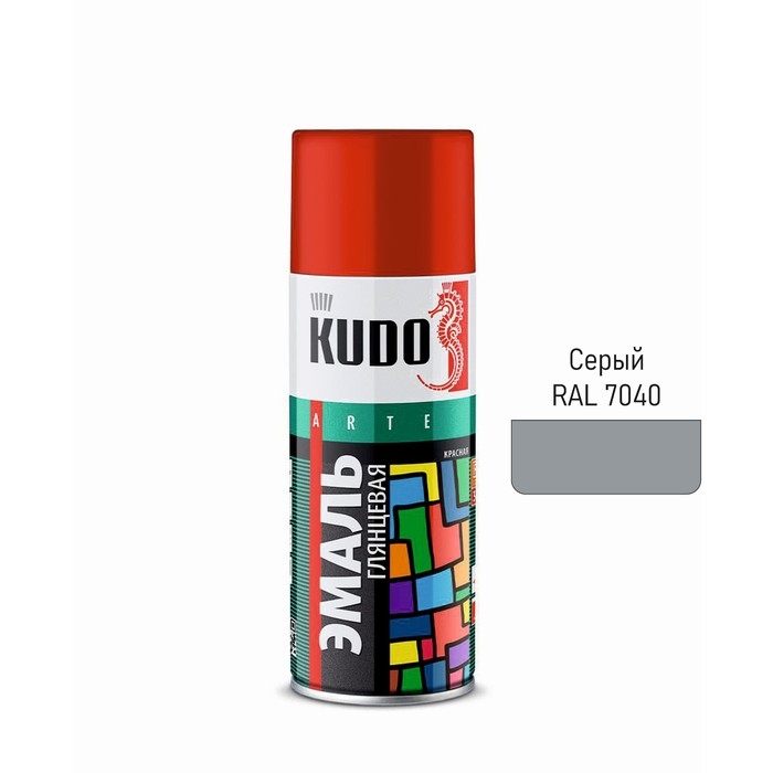 Аэрозольная краска эмаль KUDO универсальная серая RAL 7040, 520 мл