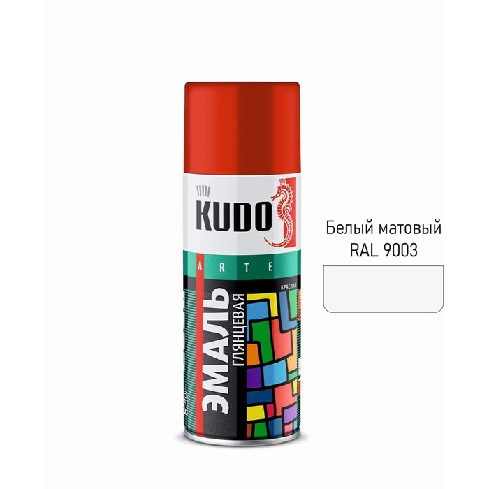 Аэрозольная краска эмаль KUDO универсальная белая матовая RAL 9003, 520 мл