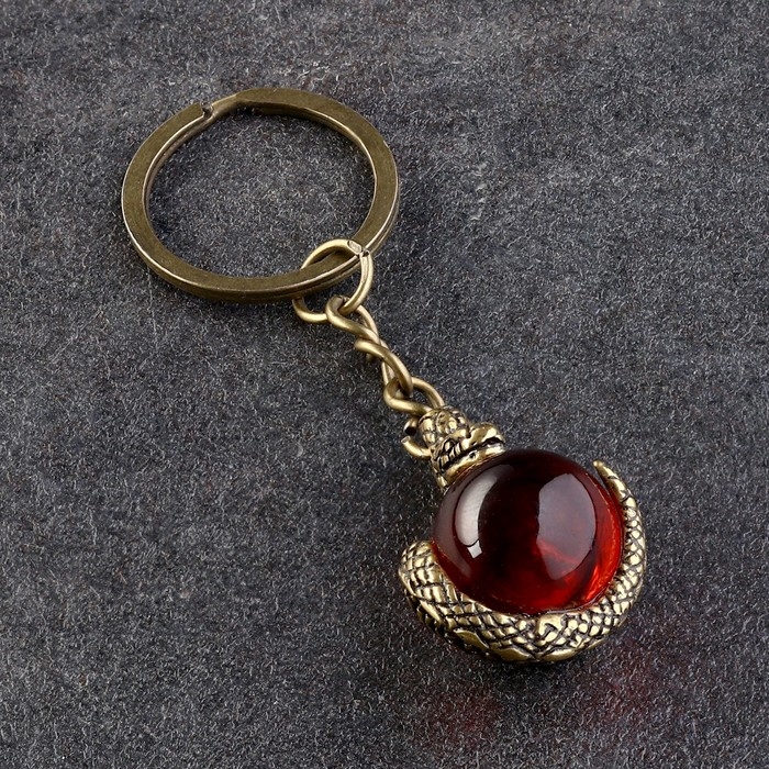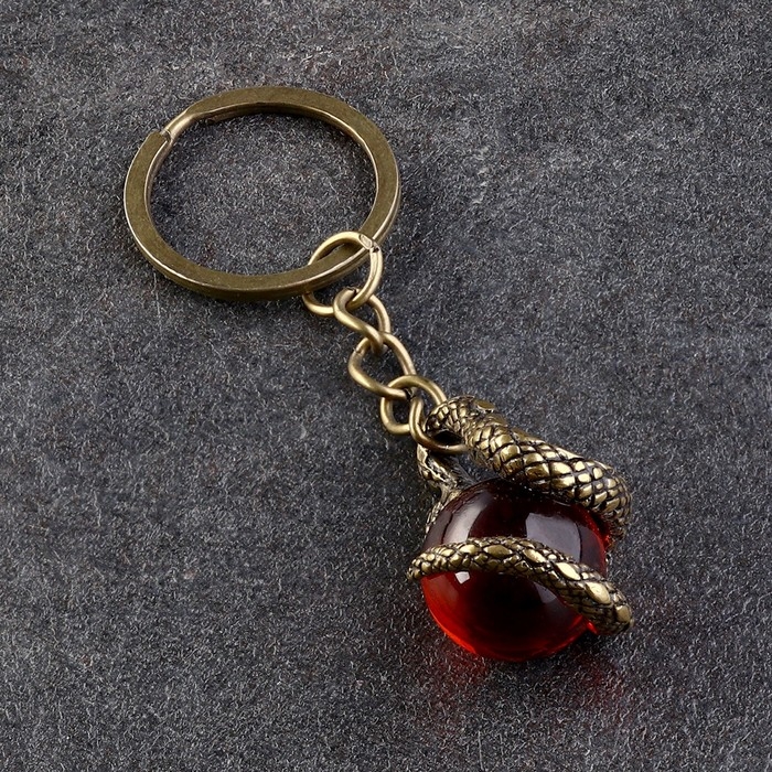 Сувенир символ года-брелок "Змейка с шар символ годаом", латунь, янтарь, 2х2х8 см 1038346