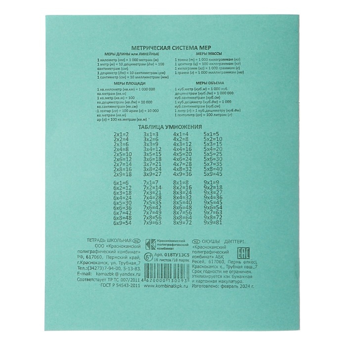 Комплект тетрадей из 20 штук, 18 листов в клетку КПК "Зелёная обложка", блок №2, 60 г/м2, белизна 75% (серые листы)