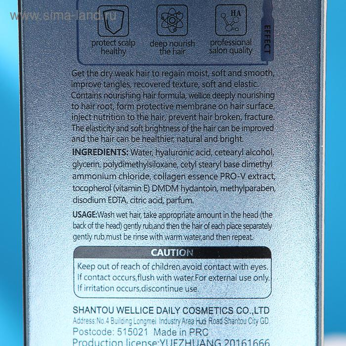 Состав: Water, Hyaluronic Acid, Collagen Essence, PRO-V extract, Tocopheryl Acetate, Protein Essence, Cetearyl Alcohol, Glycerin, Polydimethylsiloxane, Cetyl Stearyl Base Dimethy Ammonium Chloride, DMDM Hydantoin, Methylparaben, Disodium EDTA, Citric Acid, Parfum.